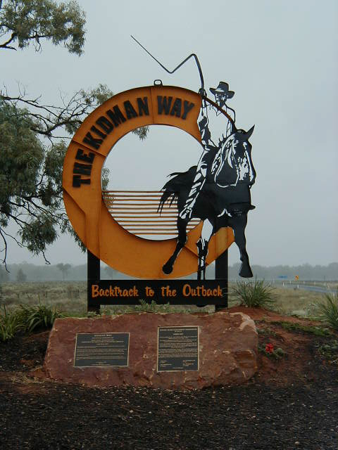 Bourke - As in 'The Back Of'.... This was our next stop not too far up the road. This town had had 5 inches of rain so again the sides of the roads were very boggy and luckily we did not come across any road trains coming our way. The road is very good and since it was opened up in May 1999, it has brought a lot of tourism to Bourke. This is seen in the main street where the pavements have been all bricked paved and the original metal bars protecting the shop windows have been removed and replaced with colourbond pull down shutters. The park we stayed at was just the other side of Bourke and it had copped the downpour with the caravan sites quite waterlogged. There are some beautiful old buildings in Bourke and also the grave site of Fred Couples who did so much for the aborigines in Bourke. He requested to be buried with wide open spaces around him. We found his monument in the Bourke cemetary - a very simple grave site and an aboriginal monument commemorating his life.