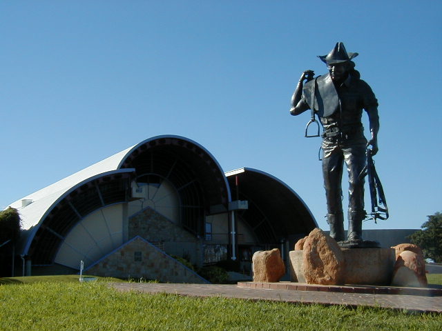 Winton - The Home of Waltzing Matilda .... and the birthplace of Qantas. Winton is 176 kms up the road from Longreach. Again, we missed the campfire cooking at the caravan park which was on last night or is it on tomorrow night. I dare not ask. Anyway, we arrived at lunchtime and hit the town in the afternoon. Winton is known for the Waltzing Matilda Centre (the origin of our national song, so they say). This centre is very well done with the life of Banjo Paterson and Waltzing Matilda and is an impressive combination of Australia's history and today's technology.