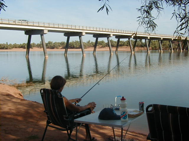 It was then on to Port Smith Lagoon Caravan Park which is about 25 km further south down the Great Northern Highway and then 23 km out to the coast. Once again the road to the coast was unmade, sand , corrugations and the occasional bulldust. We took it easy with the van and eventually made the caravan park. Port Smith Lagoon is a very large tidal lagoon and if you had a boat would be a fisherman's paradise as there is easy access to the Indian Ocean as well as good fishing in the lagoon. With no boat you are restricted to fishing in the lagoon 2 hours before and after low tide. We took the opportunity to throw in a line and was lucky enough to catch a couple of fish but as it was not enough for a meal we gave them to the people in the next van who we were fishing with. With what they caught they had enough for a reasonable meal.