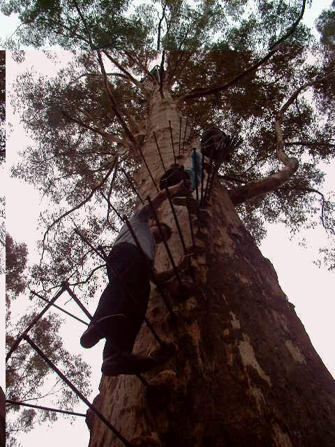 Tree. This 60 metre high Karri tree has a series of steel stakes