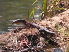 freshwater crocodile on the side of the bank as we took off and as we made our