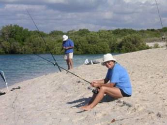 lucky and managed to have a fish entrée on one of the nights. We took Jan and Ian fishing to Hunter Creek. This very wide creek is 7 kms