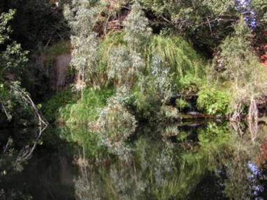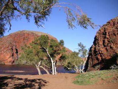 banks of the river with river gums and shady trees all around. The Pilbara region