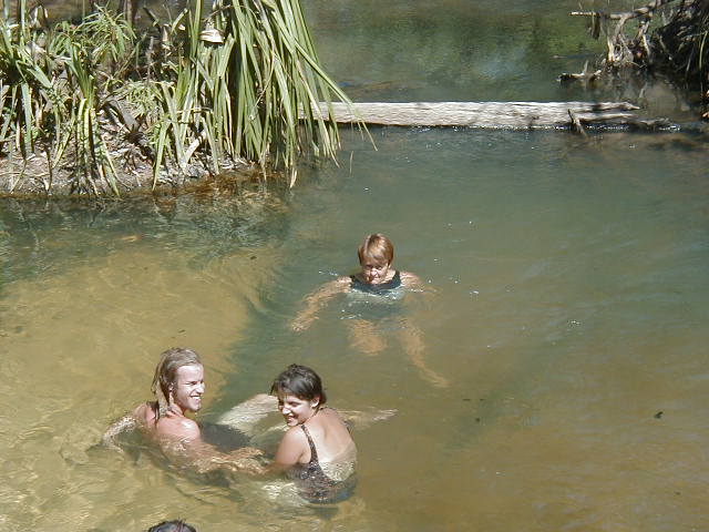 On the same road as Butterfly Gorge but easily accessible are the Douglas Hot Springs(photo). These springs which come out of the ground at a temperature of over 60 degrees flow down into an oasis where the hot water meets the Douglas River. The hot and cold water meet and as you lie in the pool, you experience the water being cold one minute and then warm or hot the next minute. It is a very relaxing way to spend the afternoon.